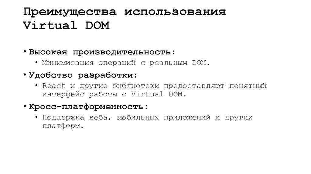 Преимущества использованияVirtual DOM
