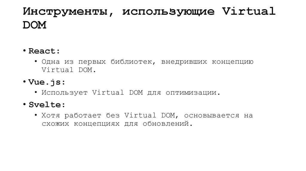 Инструменты, использующие VirtualDOM