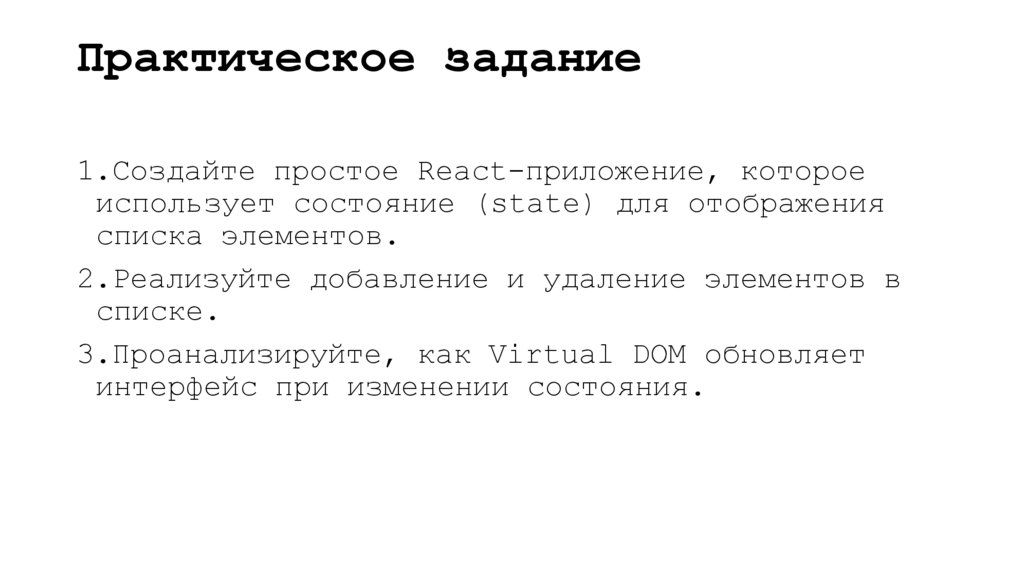 • Практика работы с Virtual DOM помогает понять