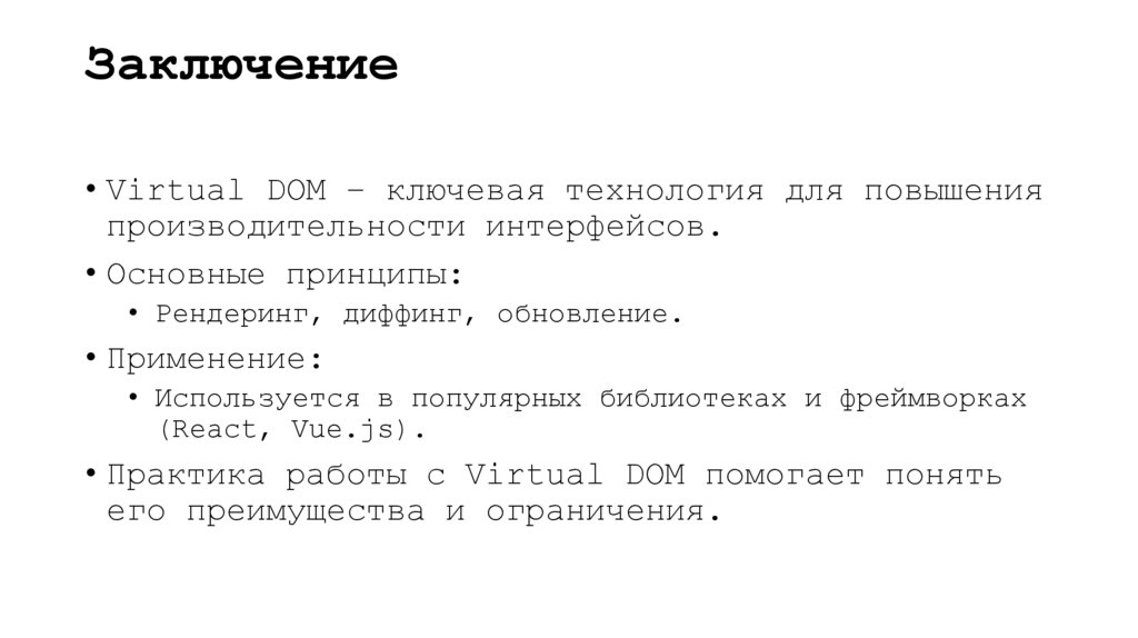 Заключение• Virtual DOM – ключевая технология для повышения