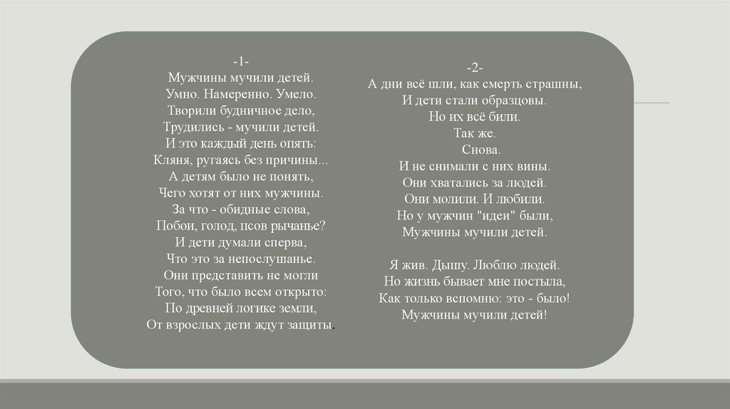 -1Мужчины мучили детей.Умно. Намеренно. Умело.