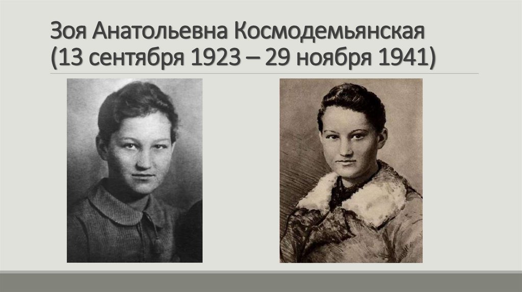 Зоя Анатольевна Космодемьянская(13 сентября 1923 – 29 ноября 1941)