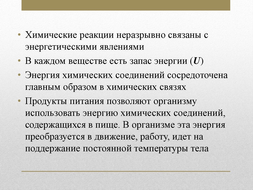 • Химические реакции неразрывно связаны сэнергетическими явлениями