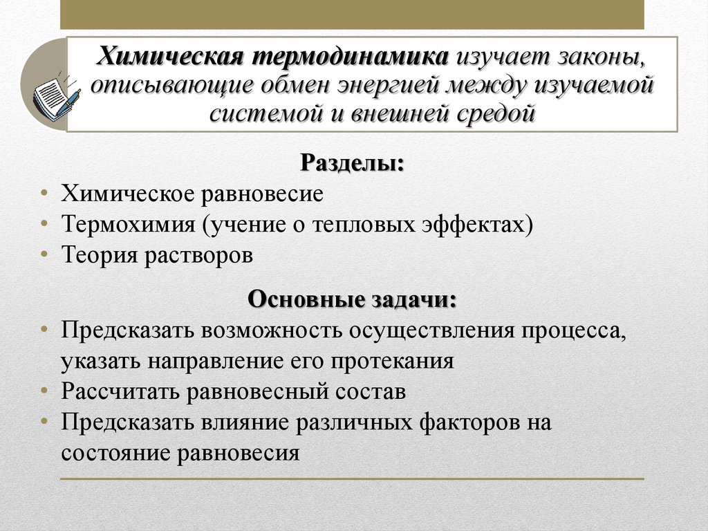 Химическая термодинамика изучает законы,описывающие обмен энергией между изучаемой