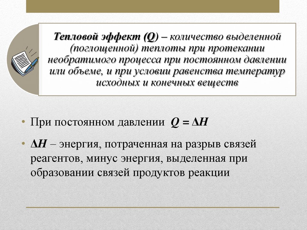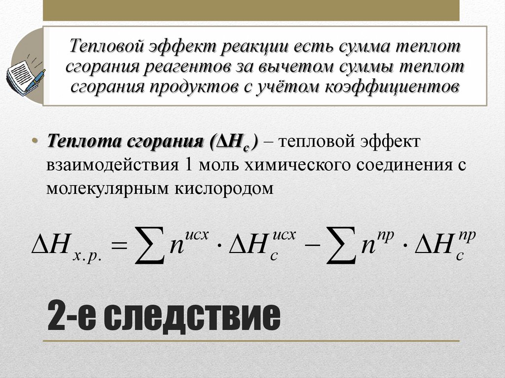 эффектом (ΔHº) реакции. Его рассчитывают по
