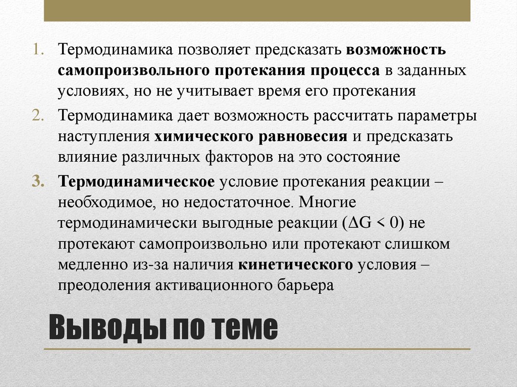 1. Термодинамика позволяет предсказать возможностьсамопроизвольного протекания процесса в заданных