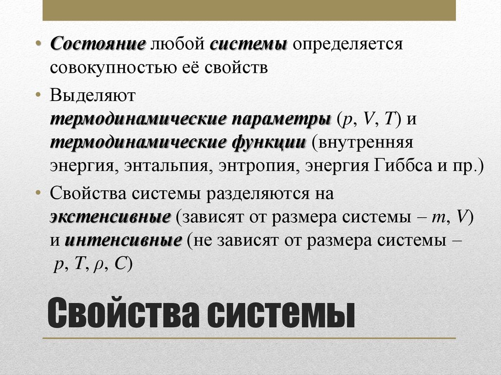 • Состояние любой системы определяетсясовокупностью еѐ свойств