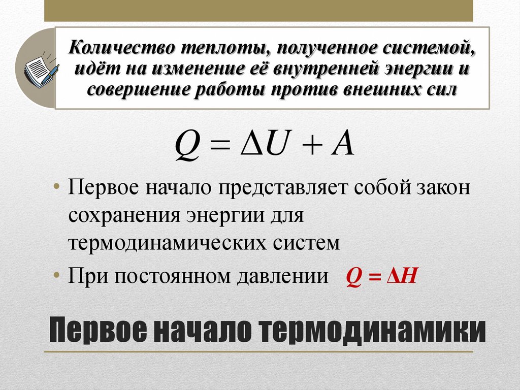 Количество теплоты, полученное системой,идѐт на изменение еѐ внутренней энергии и