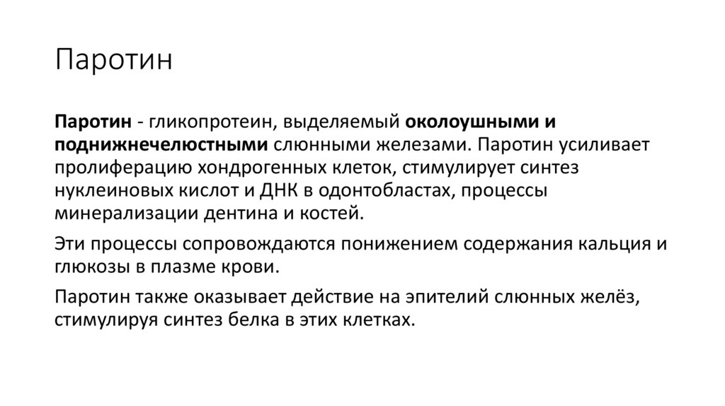 Паротин также оказывает действие на эпителий слюнных желёз,