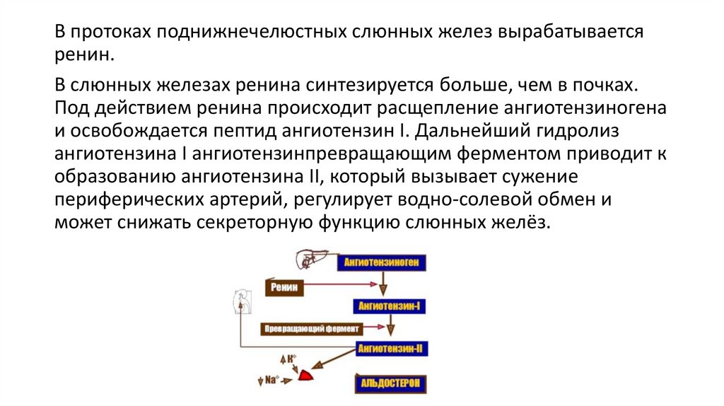В слюнных железах ренина синтезируется больше, чем в почках.