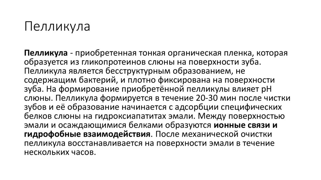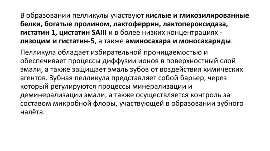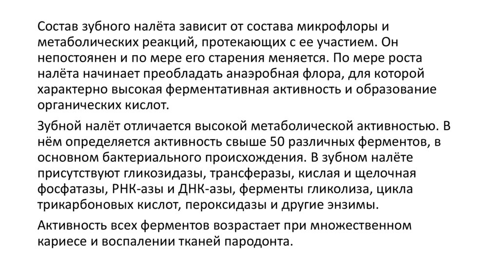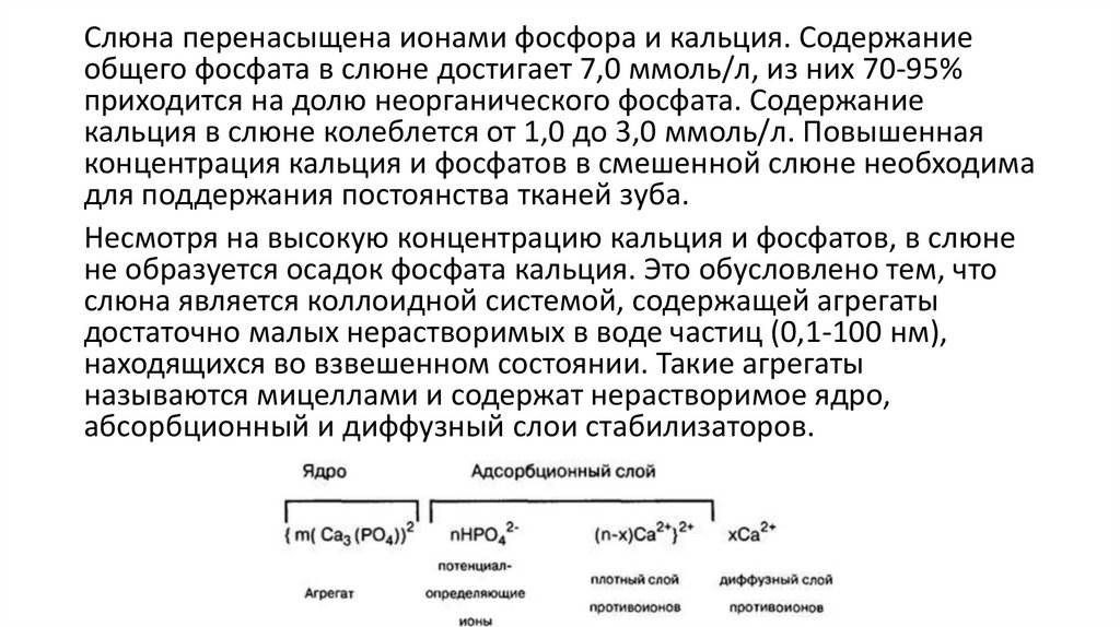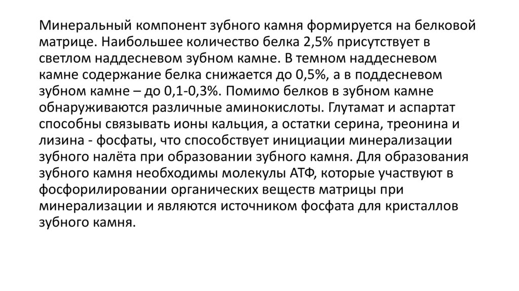Минеральный компонент зубного камня формируется на белковойматрице. Наибольшее количество белка 2,5% присутствует в
