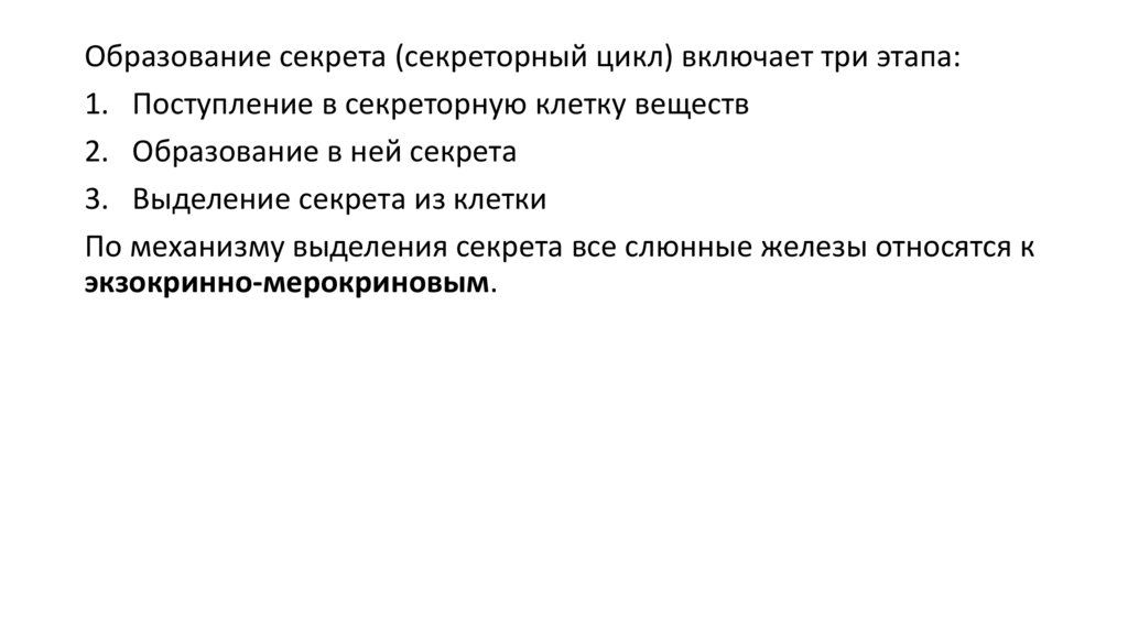 Образование секрета (секреторный цикл) включает три этапа:1. Поступление в секреторную клетку веществ