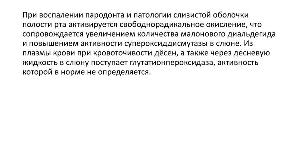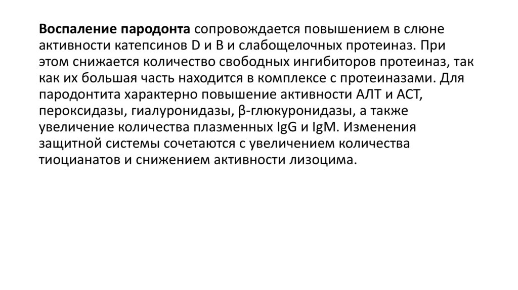 г/л. Оно не меняется при развитии пародонтита и не зависит от
