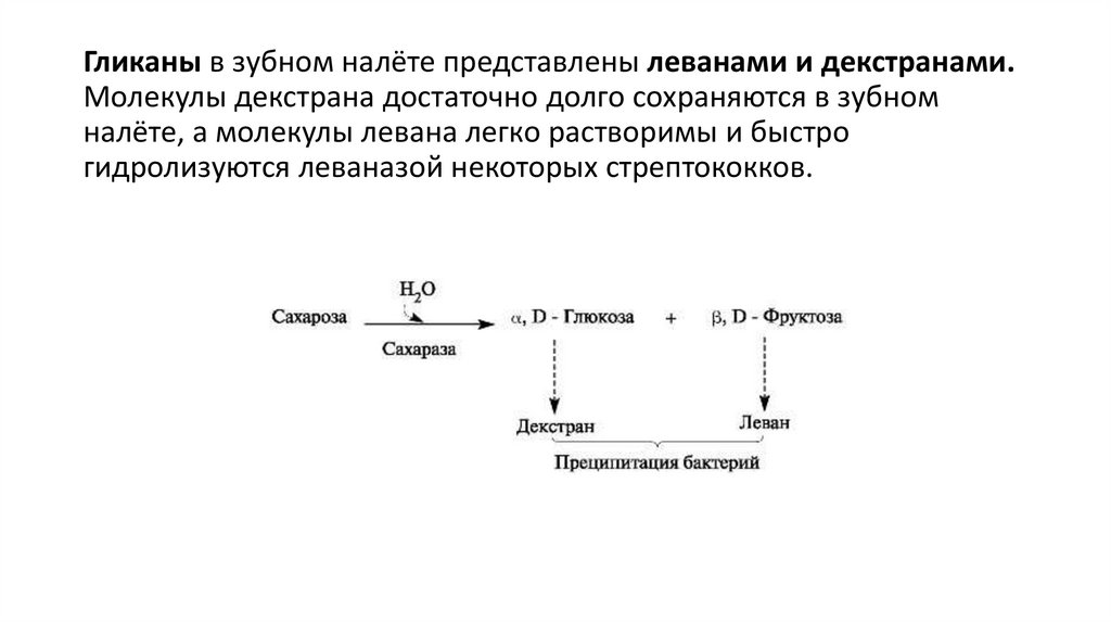 Гликаны в зубном налёте представлены леванами и декстранами.Молекулы декстрана достаточно долго сохраняются в зубном