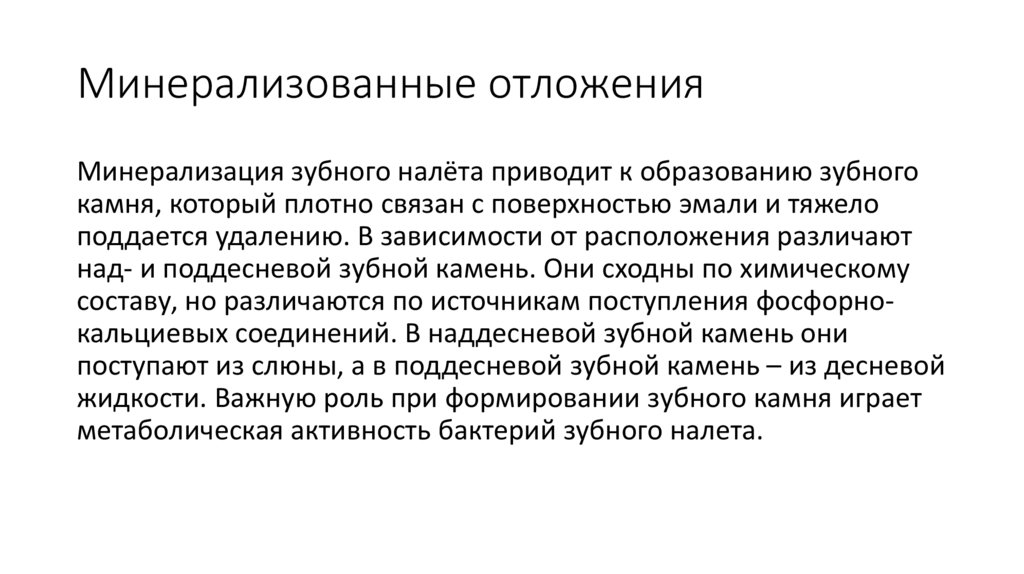 Минерализованные отложенияМинерализация зубного налёта приводит к образованию зубного