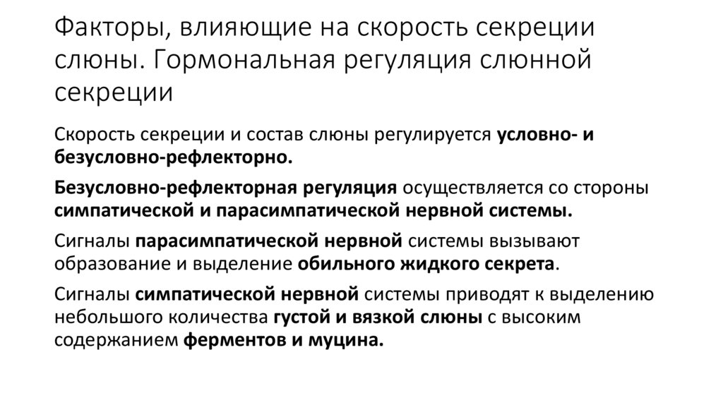 Факторы, влияющие на скорость секрециислюны. Гормональная регуляция слюнной