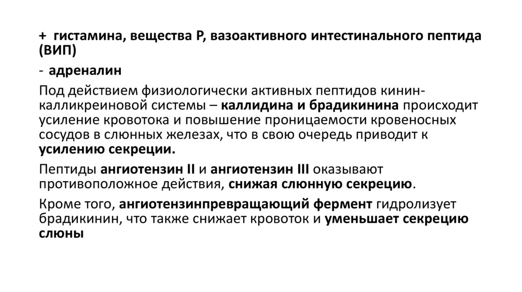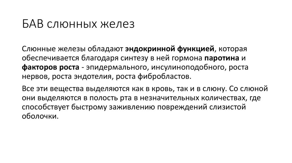 БАВ слюнных железСлюнные железы обладают эндокринной функцией, которая