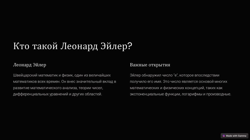 История числа ЭйлераЧисло Эйлера, обозначаемое буквой "e", является одной из самых