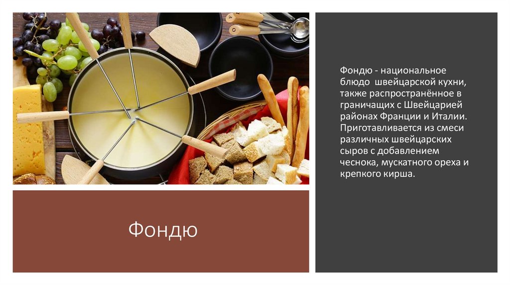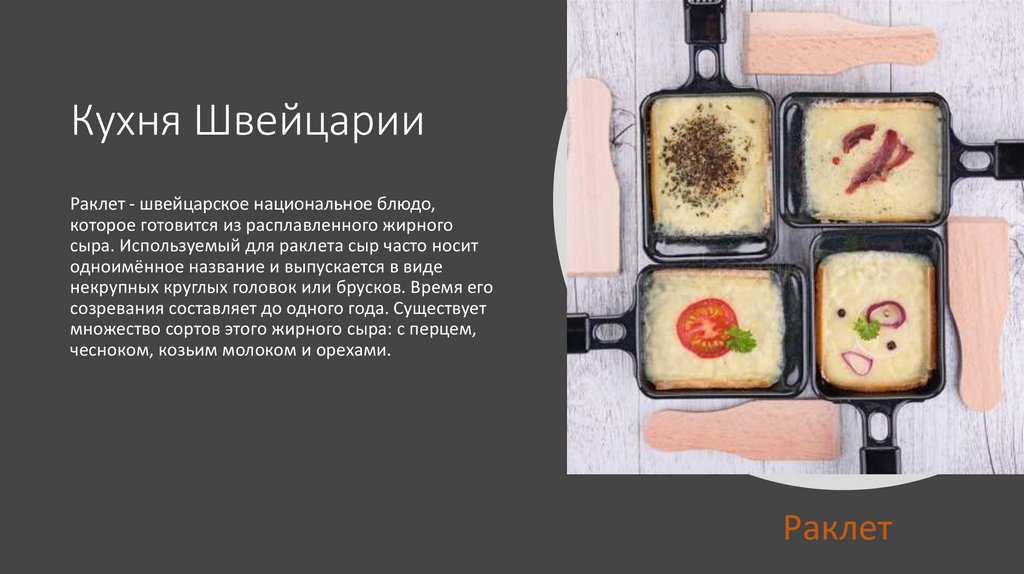 Кухня ШвейцарииРаклет - швейцарское национальное блюдо,