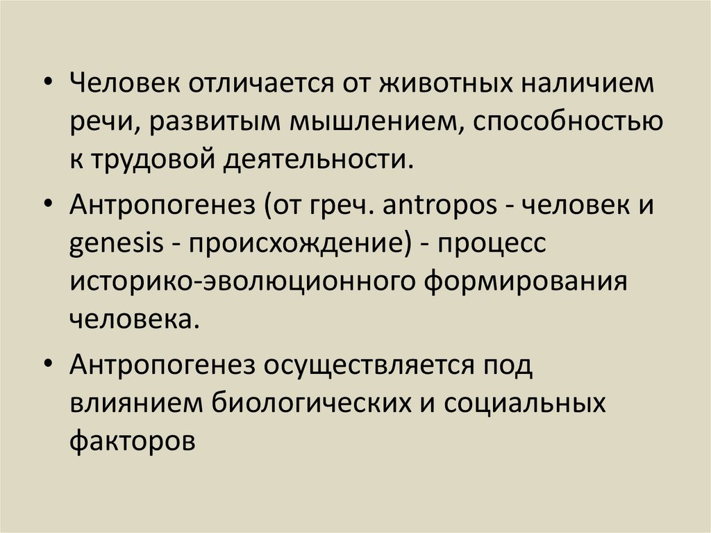 • Человек отличается от животных наличиемречи, развитым мышлением, способностью
