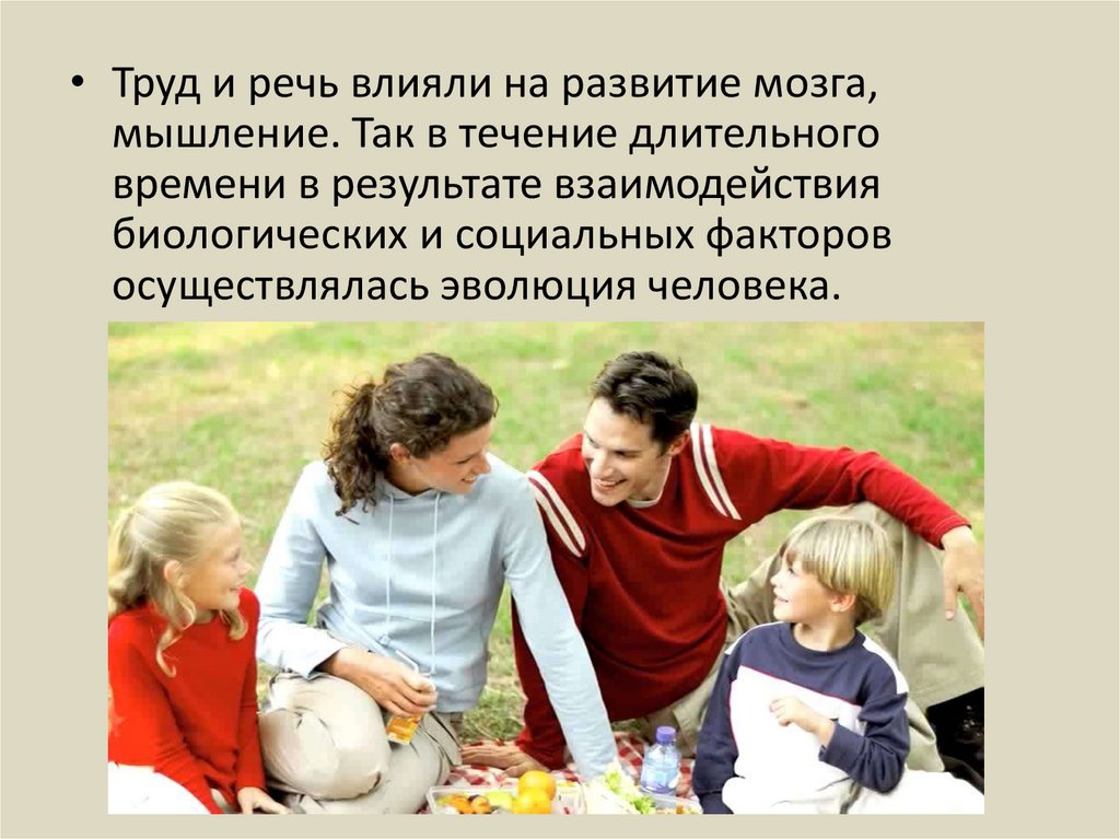 • Труд и речь влияли на развитие мозга,мышление. Так в течение длительного