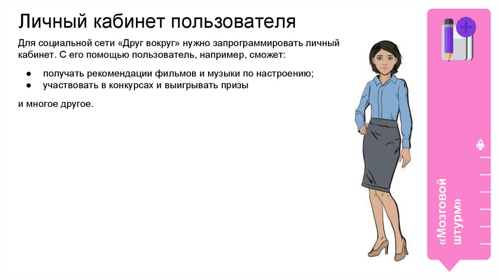Личный кабинет пользователяДля социальной сети «Друг вокруг» нужно запрограммировать личный