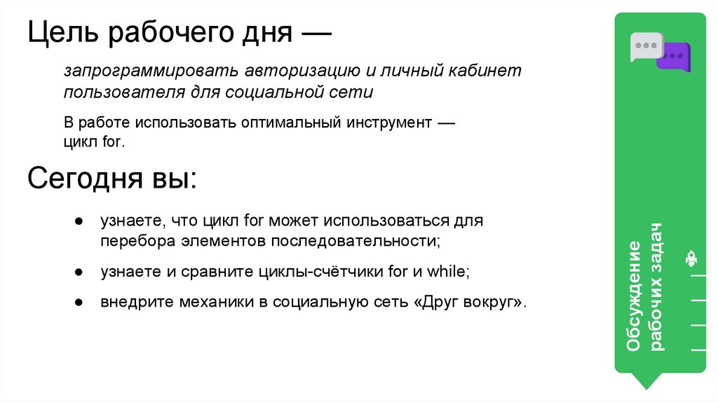 Цель рабочего дня —запрограммировать авторизацию и личный кабинет