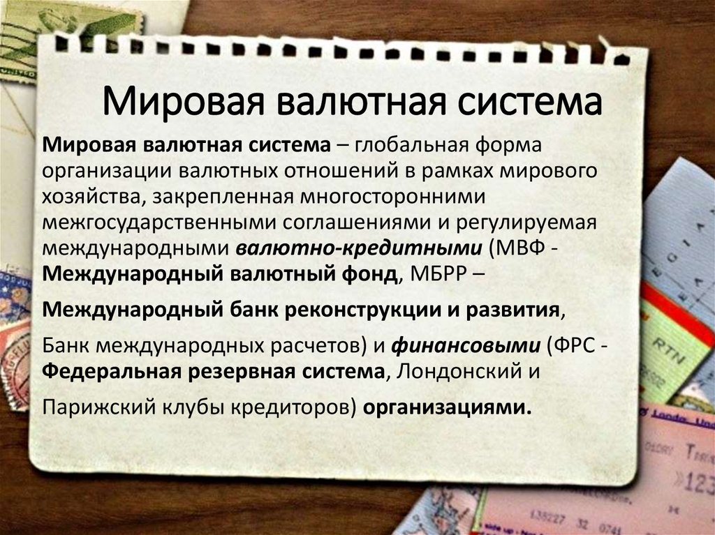 международными валютно-кредитными (МВФ Международный валютный фонд, МБРР –
