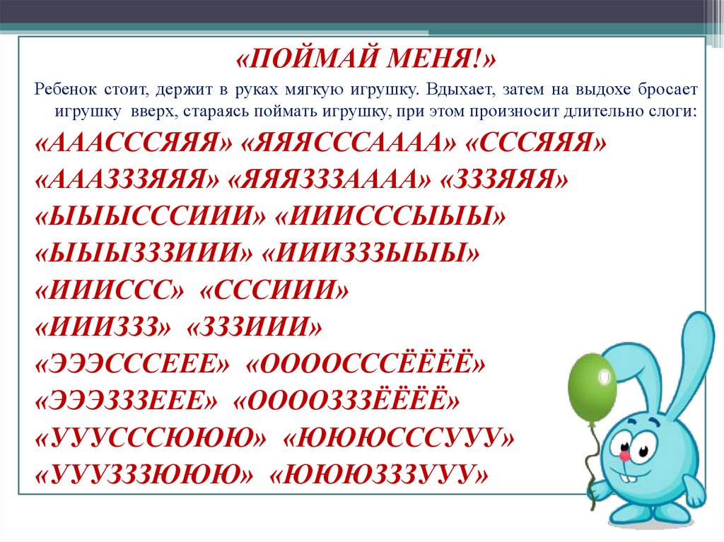«ПОЙМАЙ МЕНЯ!»Ребенок стоит, держит в руках мягкую игрушку. Вдыхает, затем на выдохе бросает