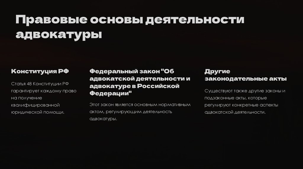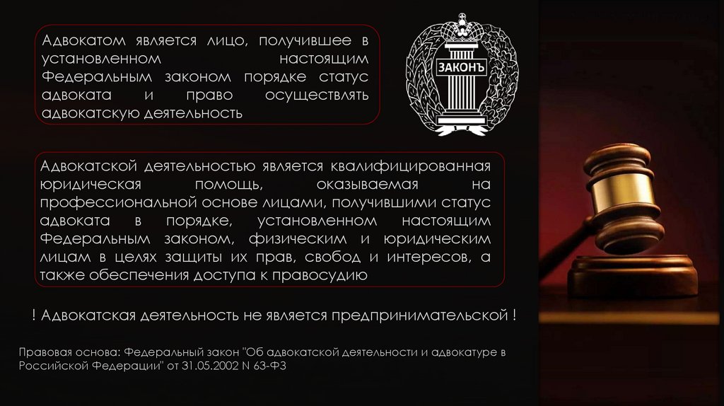 Правовая основа: Федеральный закон "Об адвокатской деятельности и адвокатуре в