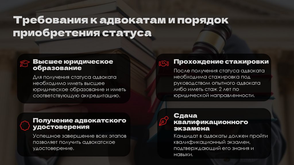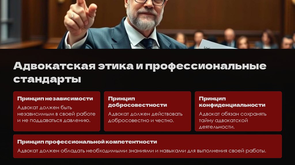 Адвокат должен обладать необходимыми знаниями и навыками для выполнения своей работы.