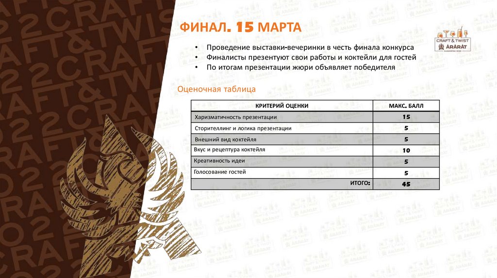 ФИНАЛ. 15 МАРТАПроведение выставки-вечеринки в честь финала конкурса