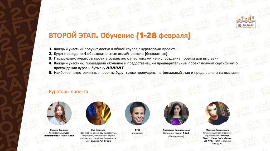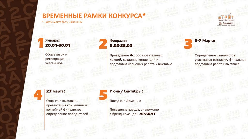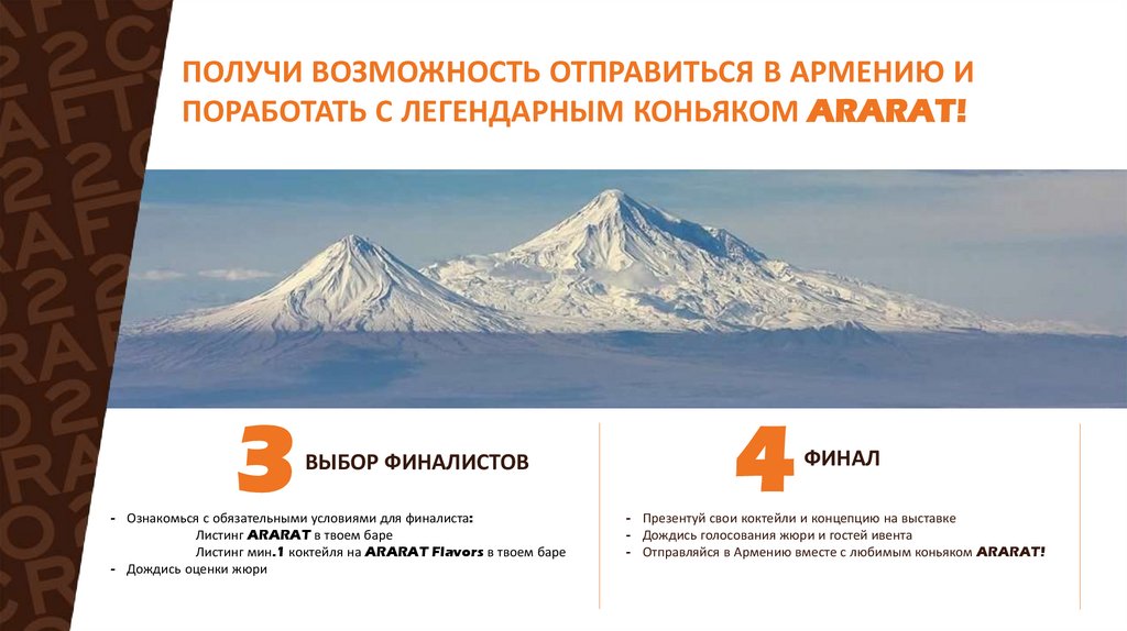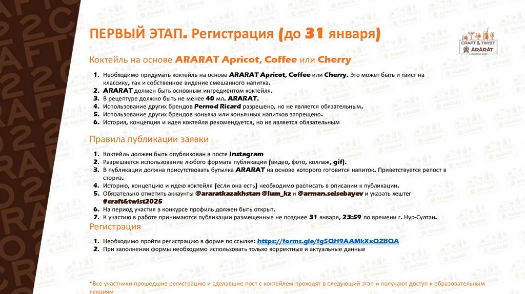 ПЕРВЫЙ ЭТАП. Регистрация (до 31 января)Коктейль на основе ARARAT Apricot, Coffee или Cherry