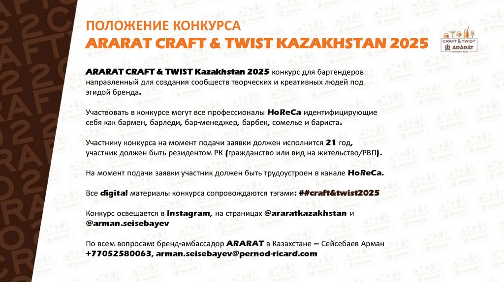 ПОЛОЖЕНИЕ КОНКУРСАARARAT CRAFT & TWIST KAZAKHSTAN 2025