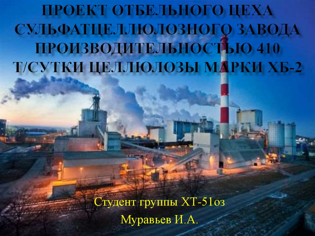 Проект отбельного цеха сульфатцеллюлозного завода производительностью 410 т/сутки целлюлозы марки ХБ-2