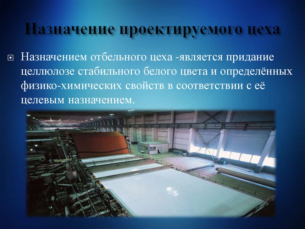 Назначением отбельного цеха -является приданиецеллюлозе стабильного белого цвета и определённых