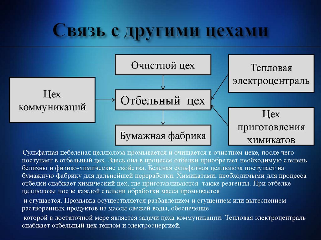 поступает в отбельный цех. Здесь она в процессе отбелки приобретает необходимую степень