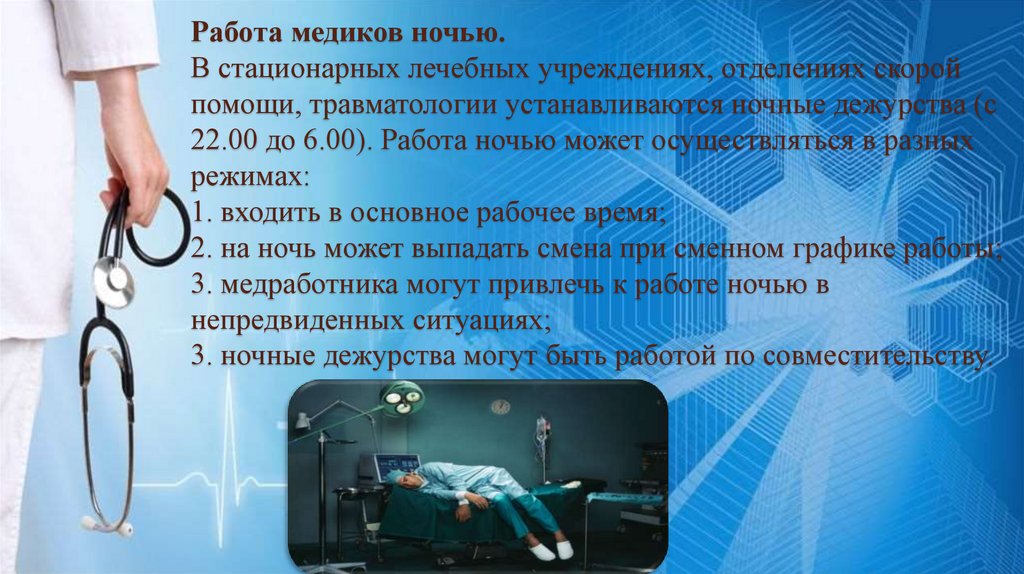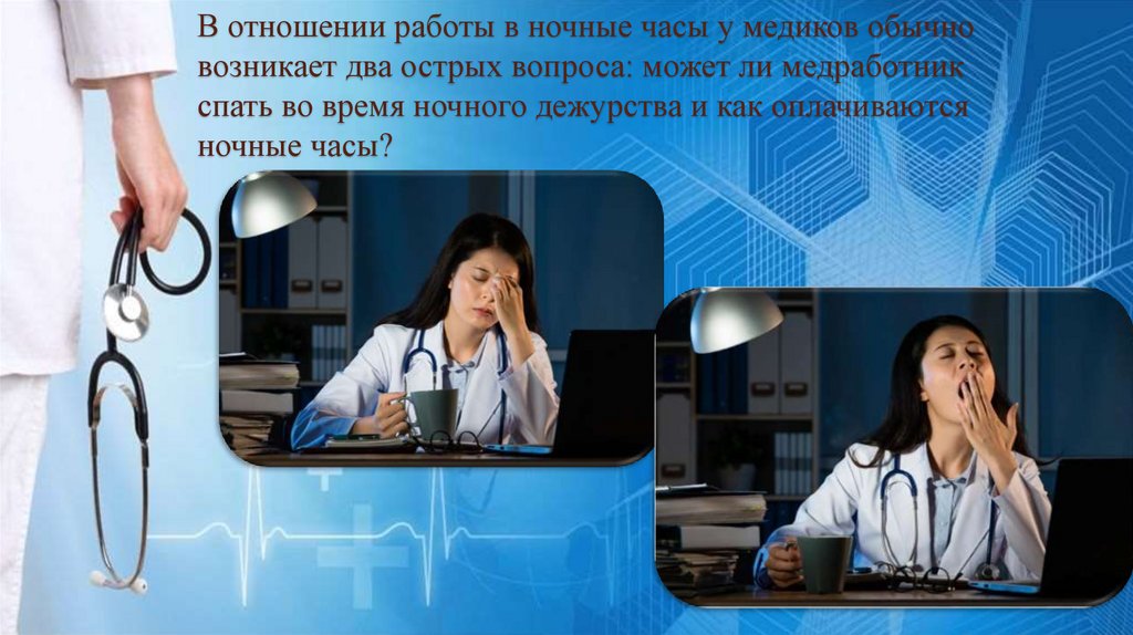 В отношении работы в ночные часы у медиков обычновозникает два острых вопроса: может ли медработник