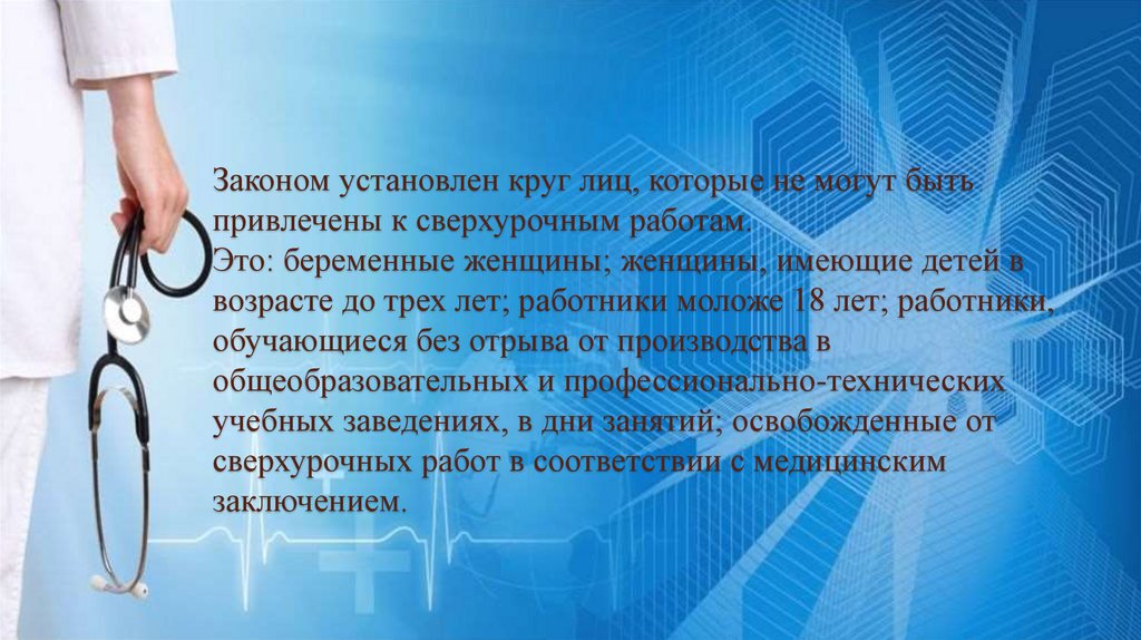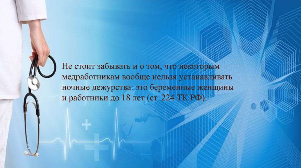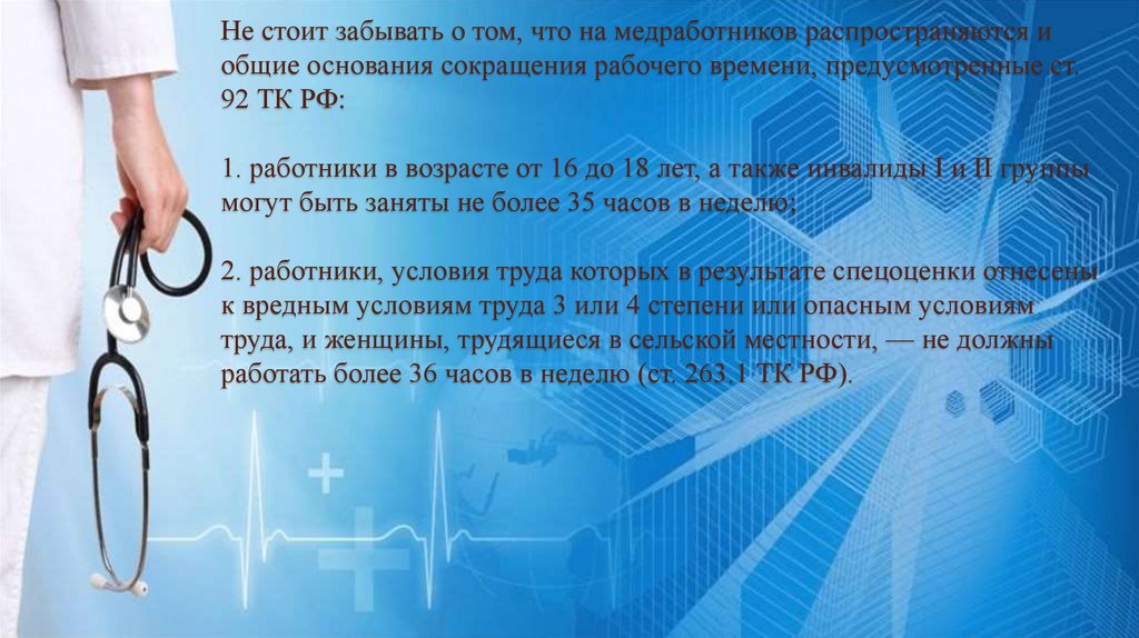 Не стоит забывать о том, что на медработников распространяются иобщие основания сокращения рабочего времени, предусмотренные ст.