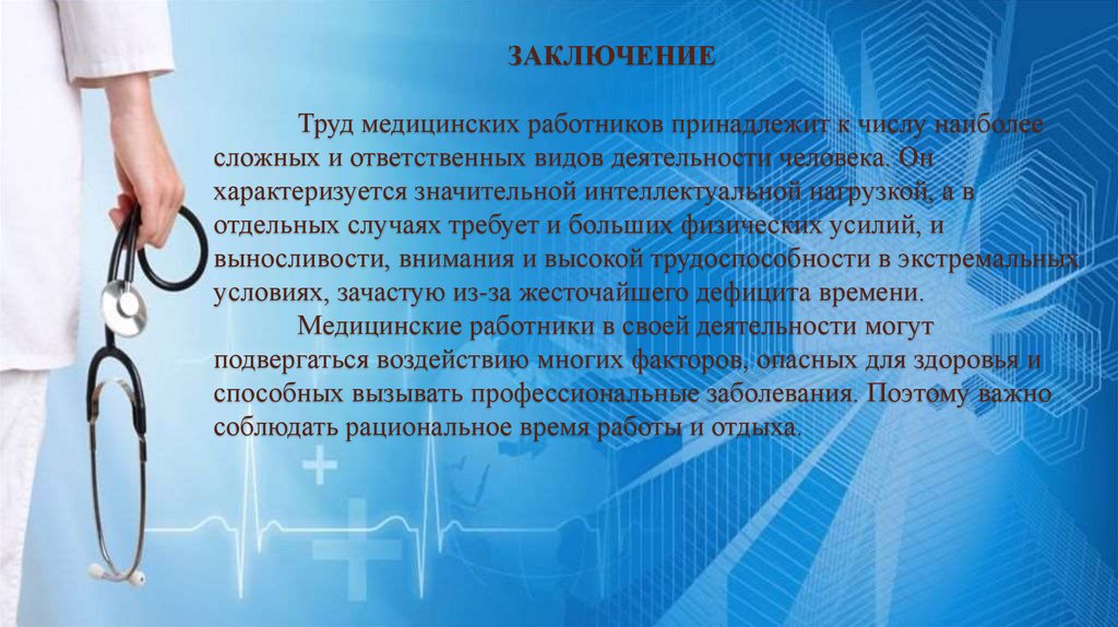 ЗАКЛЮЧЕНИЕТруд медицинских работников принадлежит к числу наиболее