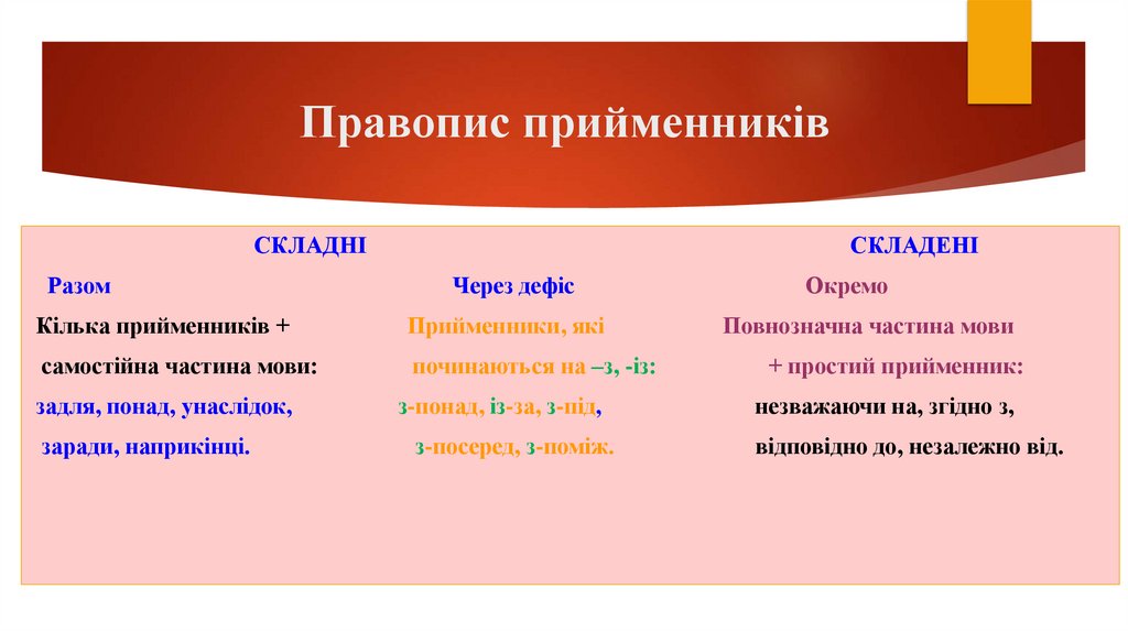 Правопис складних прийменників. Перехід повнозначних слів у прийменники