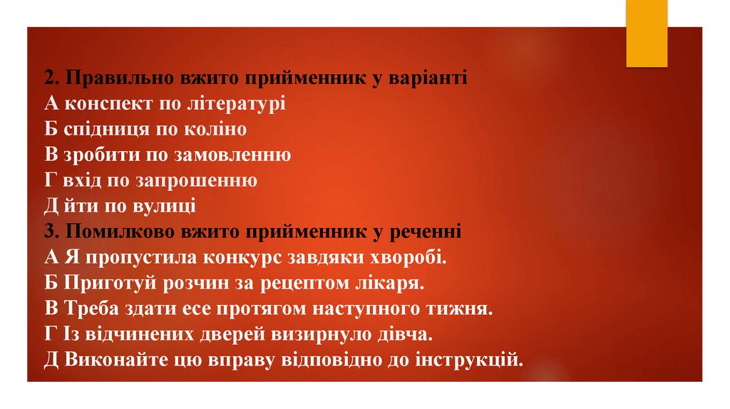 2. Правильно вжито прийменник у варіантіА конспект по літературі