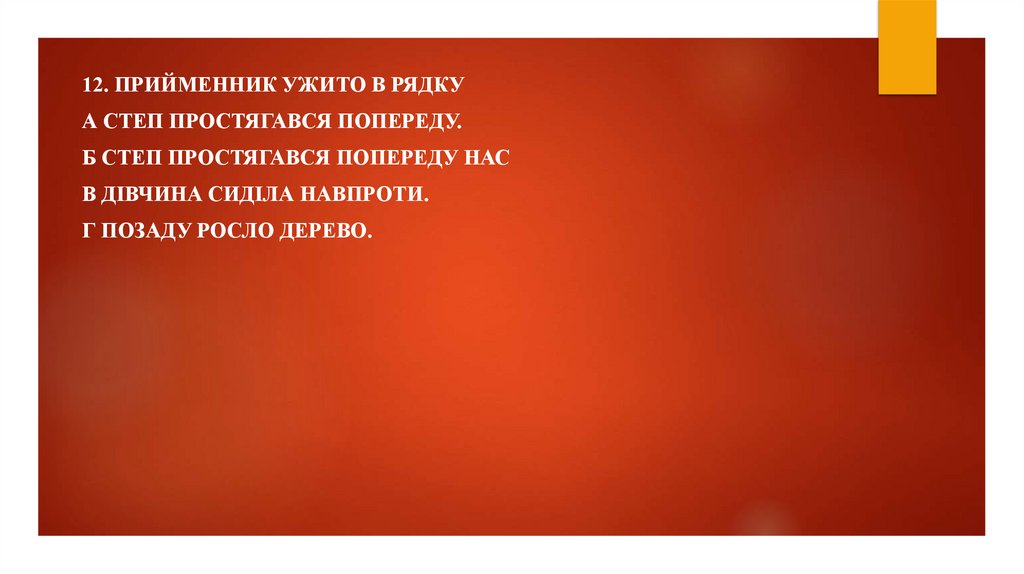12. ПРИЙМЕННИК УЖИТО В РЯДКУА СТЕП ПРОСТЯГАВСЯ ПОПЕРЕДУ.