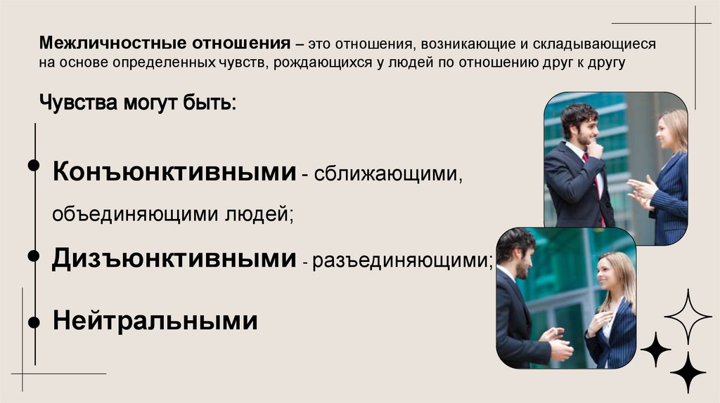 Межличностные отношения – это отношения, возникающие и складывающиесяна основе определенных чувств, рождающихся у людей по отношению друг к другу