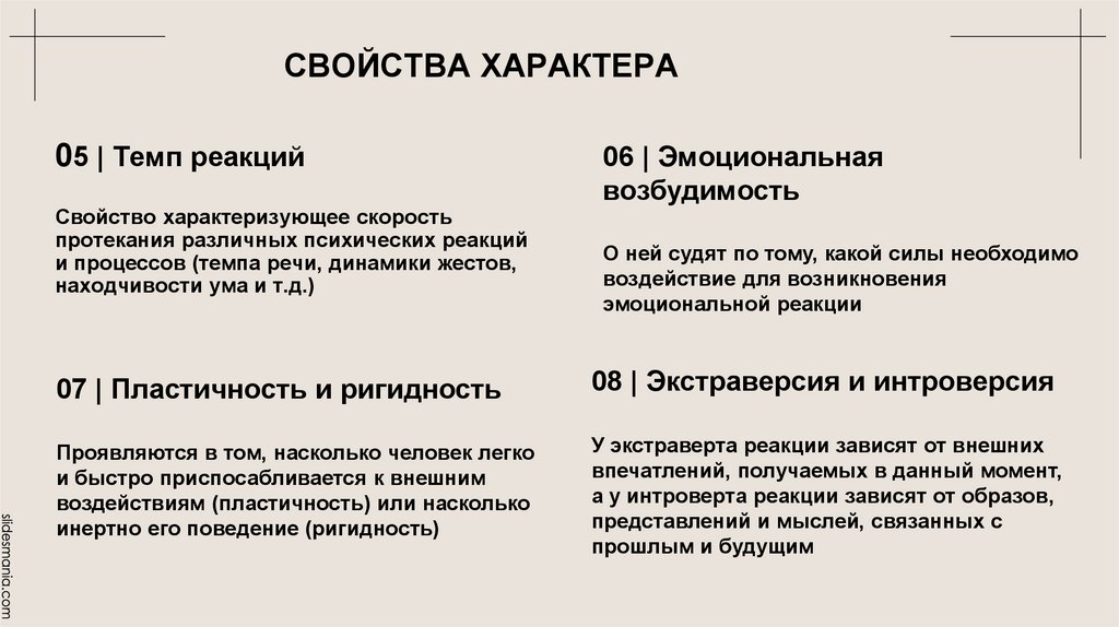 СВОЙСТВА ХАРАКТЕРА05 | Темп реакций
