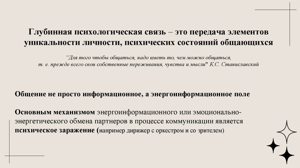 Глубинная психологическая связь – это передача элементовуникальности личности, психических состояний общающихся