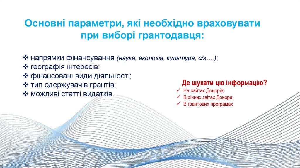 ВИСНОВКИДонорські організації лімітують межі гранту, указуючи максимально, а іноді й