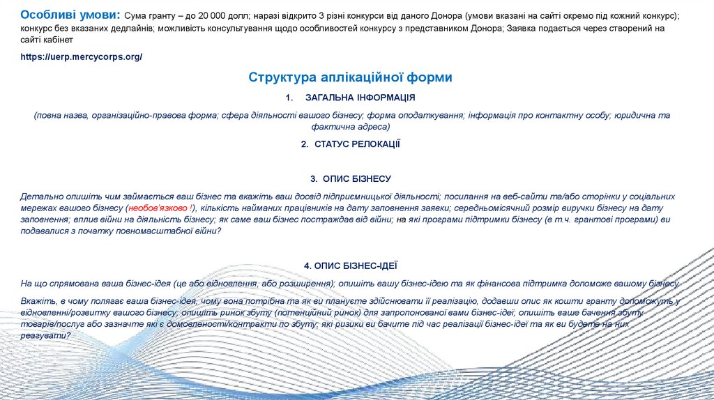 СТРУКТУРА ЗАЯВКИ ВІДMercy Corps
