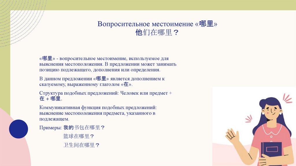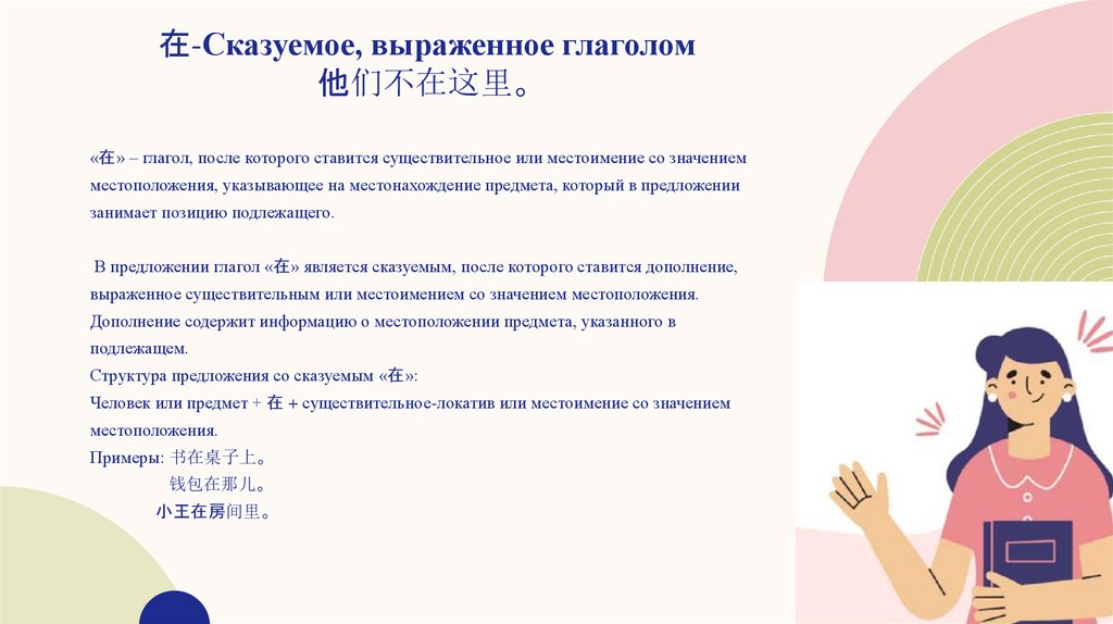 Человек или предмет + 在 + существительное-локатив или местоимение со значением