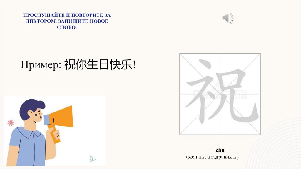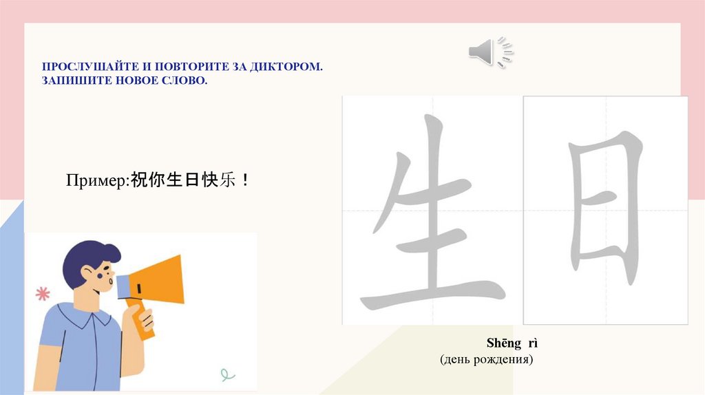 ПРОСЛУШАЙТЕ И ПОВТОРИТЕ ЗА ДИКТОРОМ. ЗАПИШИТЕНОВОЕ СЛОВО.
